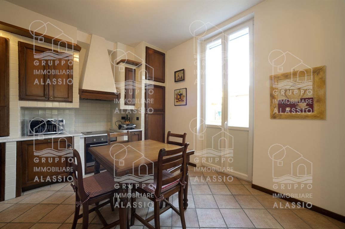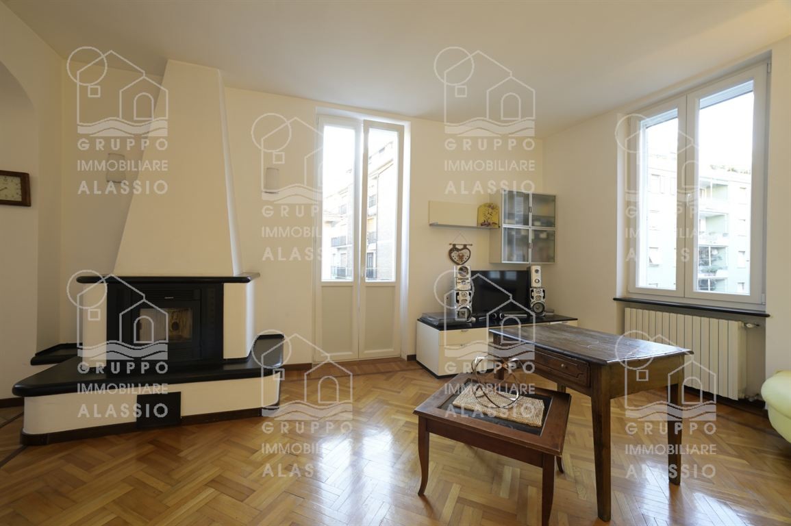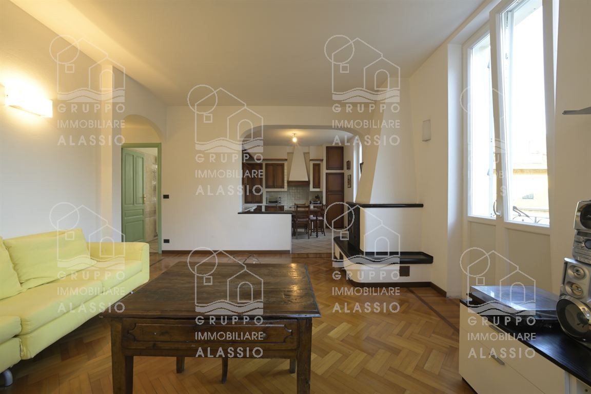 In palazzina d'epoca del 1930 a due passi dal mare e dai servizi di alassio proponiamo in vendita questo luminoso, accogliente ed elegante appartamento. l'appartamento è collocato al secondo piano senza ascensore all'interno di palazzina signorile. l'alloggio è dotato di ingresso corridoio, soggiorno ampio e luminoso con cucina in muratura a vista e camino, tre camere da letto, comodo bagno finestrato e ripostiglio. l'immobile gode di ben tre affacci, ricevendo così molta luce durante le ore del giorno, detiene 4 balconi ( due laterali e due frontali dalla zona giorno ) , è impreziosito da un meraviglioso pavimento in parquet e da finestre grandi. il riscaldamento è autonomo, è presente l'aria condizionata e, volendo, è disponibile anche uno spazioso box auto accanto a casa con prezzo a parte. appartamento molto molto grazioso, ubicato in posizione strategica consentendo di raggiungere a piedi qualsiasi punto d'interesse, come la spiaggia, il budello, la palestra, la piscina, il supermercato, la ferramenta, bar e ristoranti.