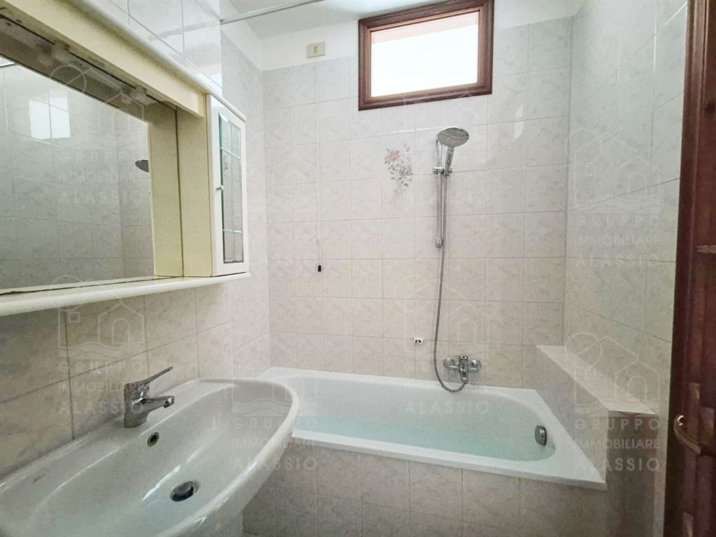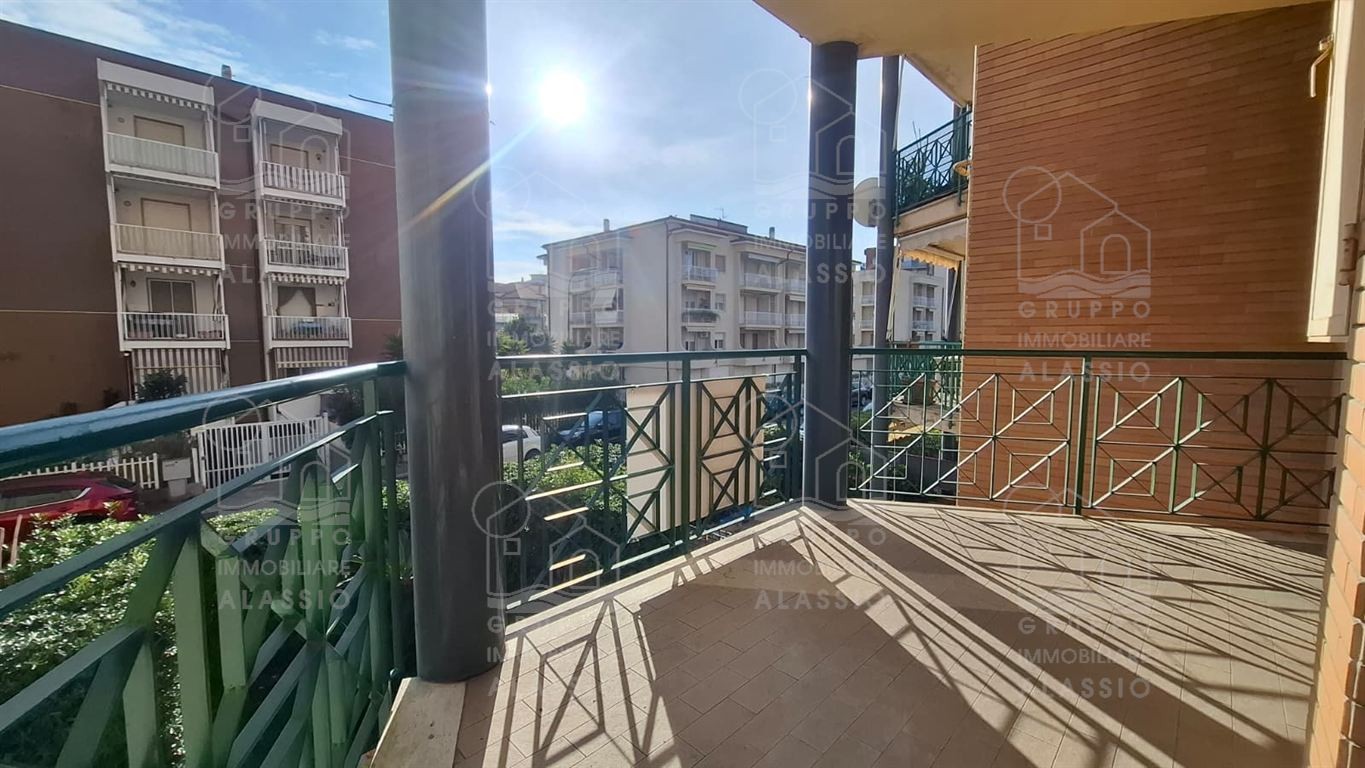 Siamo lieti di proporre sul mercato immobiliare di albenga quest'ottima soluzione abitativa impreziosita da due ampi terrazzi abitabili e dal doppio affaccio con vista aperta. l'appartamento si compone di soggiorno e cucina semi-abitabile entrambi con accesso diretto al bel terrazzo lato mare. sul lato opposto, esposto al sole sino al tramonto, troviamo due camere da letto ed il secondo terrazzo. il bagno ha la vasca, facilmente sostituibile con un ampio box doccia. pavimenti, porte, pareti, infissi, tutto è in perfetto ordine. termo autonomo a gas metano , serramenti in alluminio con vetrocamera, porta blindata, avvolgibili elettriche in sala e in cucina, ascensore. insomma, un appartamento veramente carino e piacevole, adatto come prima casa ma anche come casa la mare o da mettere a reddito. inoltre, demolendo la parete tra cucina e soggiorno si ricaverebbe un'unica grande e luminosa zona giorno con due portefinestre. le spese condominiali sono contenute, circa 500 euro all'anno. zona di buon livello con negozi di vario genere nelle vicinanze, distanza dal mare circa 400 metri in piano