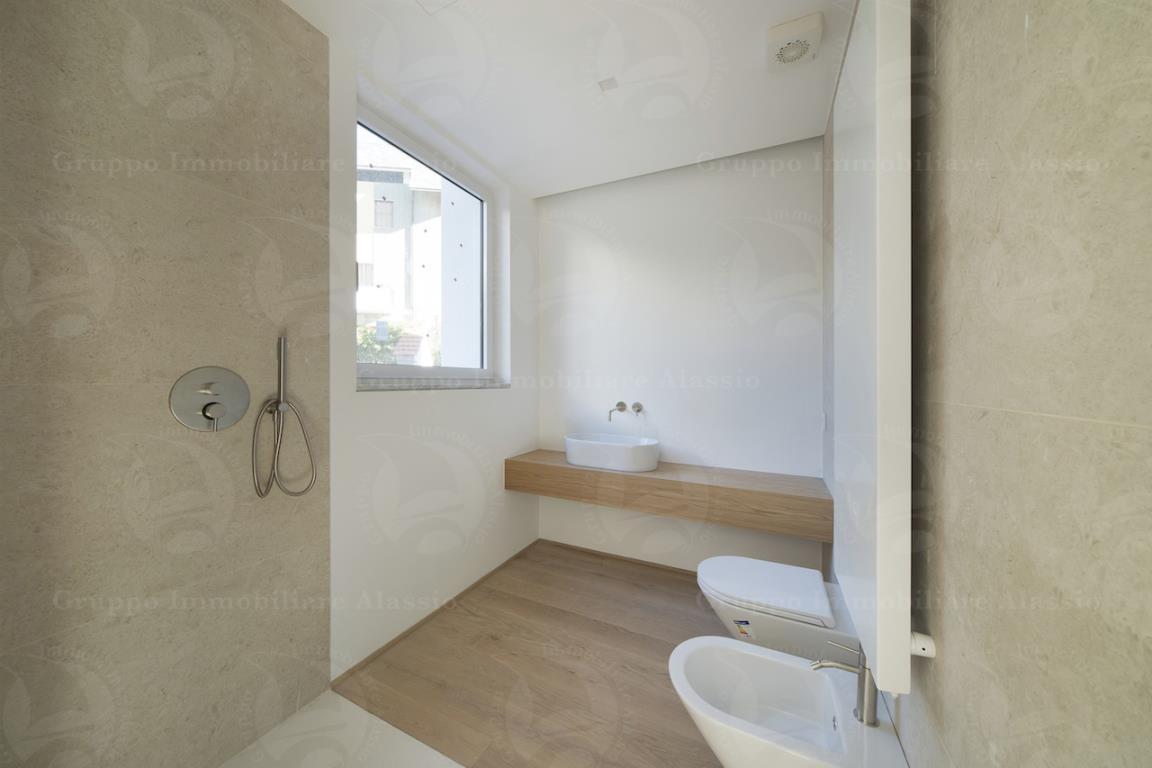 In villa di stile moderno, appena ultimata, proponiamo signorile alloggio con ampio e godibile spazio esterno. dispone di ingresso indipendente e di comodissimo parcheggio in grado di ospitare due auto. si compone di ingresso, soggiorno con cucina a vista, due camere, doppi servizi, affacciato su due lati su terrazzo esterno privato. le finiture sono di altissimo livello. tutti i particolari sono stati studiati con cura: un sensore illumina le scale, al semplice passaggio. ampie le vetrate che permettono al sole di inondare l'alloggio e le finiture sono accurate. i materiali usati di altissima qualità. i serramenti in alluminio, a tutta parete, con vetri specchiati offrono ampia luminosità e protezione da sguardi esterni. il parquet in rovere mielato pavimenta tutto l'alloggio. il riscaldamento ed il raffreddamento sono incassati per evitare rumore ed ingombro. lo spazio esterno in wpc di skema è resistente e di facile manutenzione. le luci interne sono a barra led o faretti ad incasso. la villa è dotata di cappotto termico e risulta in classe energetica a3. ottima opportunità....affrettati a prenotare il tuo appuntamento per visionarlo!. il capitolato è a disposizione in ufficio. il prezzo include il costo del posto auto.